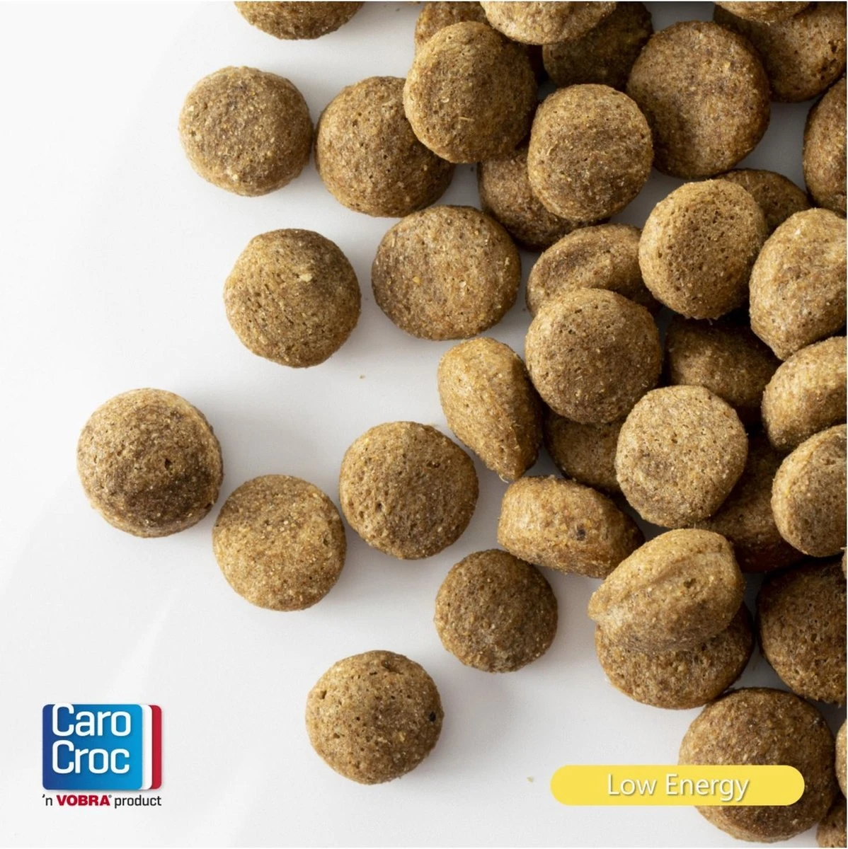CaroCroc Low Energy is een brok voor volwassen honden met relatief weinig lichamelijke inspanning (wandelen en spelen) die neigen naar overgewicht (bijvoorbeeld Labrador en Golden Retriever) of gecastreerd/gesteriliseerd zijn.