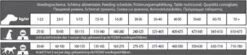 ruw eiwit (23%), ruw vet (12%), ruwe celstof (2.4%), ruwe as (6.5%), vocht (10%), koolhydraten (OKH)(46.1%), calcium (1.3%), fosfor (1%), natrium (3.4g/kg), magnesium (1.4g/kg), kalium (5g/kg), chloride (4.7g/kg), lysine (10g/kg), methionine (3.6g/kg), cysteïne (2.8g/kg), treonine (7.4g/kg), tryptofaan (1.8g/kg), linolzuur n-6 (20g/kg), alfa-linoleenzuur n-3 (3.4g/kg), arachidonzuur n-6 (0.08g/kg), EPA n-3 (g/kg), DHA n-3 (g/kg)