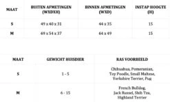 Maattabel boven tussen de productfotos