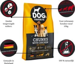 Jouw hond zal dol zijn op deze evenwichtige en natuurlijke voeding die hem van alle essentiële voedingsstoffen voorziet. De crunchy chunks bevatten hoogwaardige ingrediënten zoals heerlijke kip. Kip voorziet jouw hond van hoogwaardige dierlijke eiwitten, waardevolle omega 3 en omega 6 vetzuren bevorderen een glanzende vacht. Dit uitgebalanceerde en smakelijke hondenvoeding van hoge kwaliteit is perfect voor volwassen honden met een normaal activiteitsniveau.