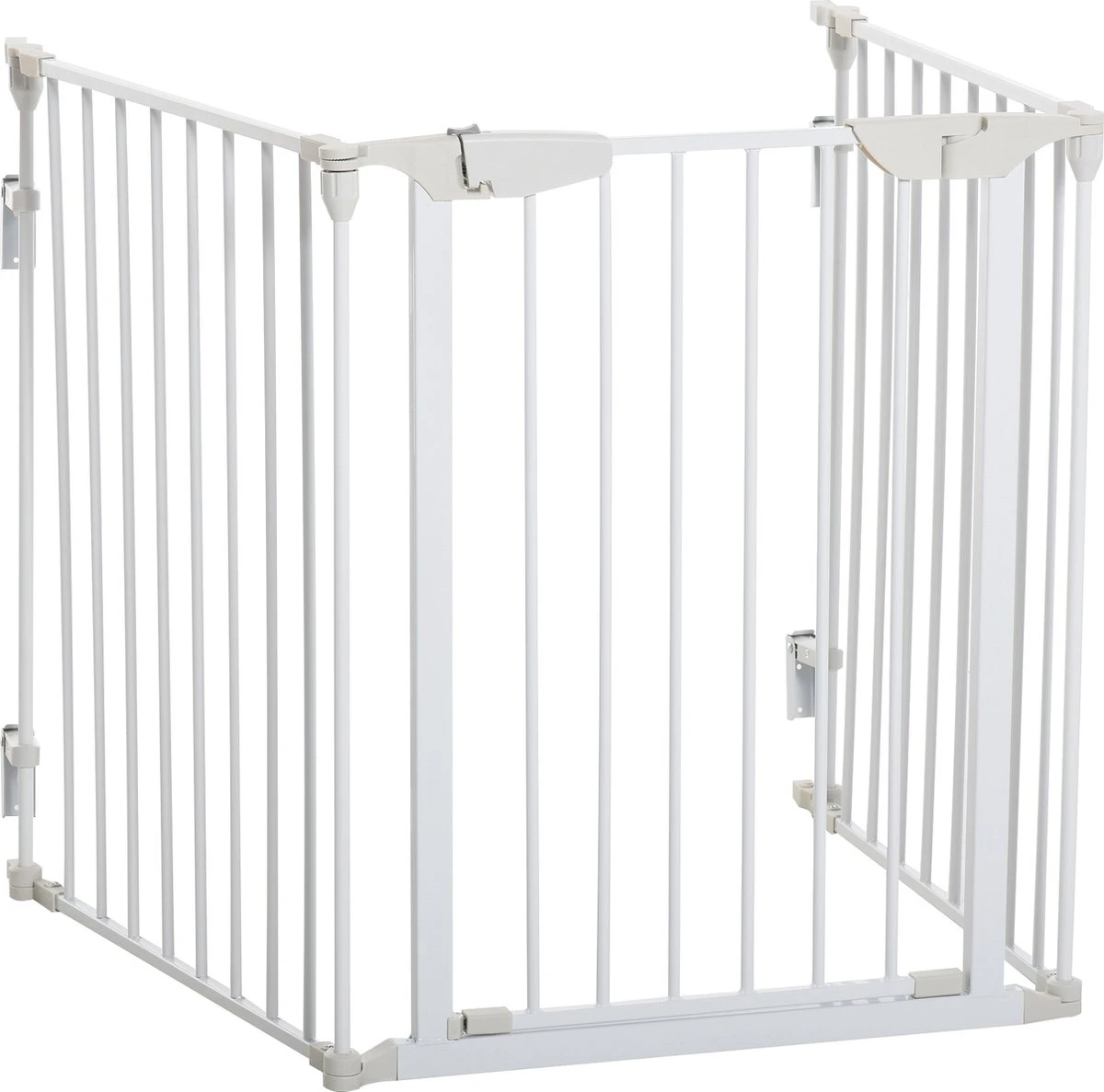 Dit hondenhek van PawHut is ontworpen om een veilige en comfortabele ruimte te creëren voor je dierbare harige vrienden. Het kan worden gebruikt als dierenbox, veiligheidshek, afscheiding voor de kachel en de kerstboom, en zelfs als scheidingswand. Dankzij het inklapbare design kan het hek gemakkelijk worden vervoerd en opgeborgen als het niet wordt gebruikt. Geef je huisdier een thuis met deze box! Eigenschappen: · Kan aan de muur worden gemonteerd met behulp van de meegeleverde accessoires · Kan worden gebruikt als kinderbox, veiligheidshek, afscherming van kerstboom, en kachel, of worden ingezet als scheidingswand, etc. · Het hek sluit automatisch als de openingshoek kleiner is dan 90° en blijft open als deze groter is dan 90° (het hek sluit niet als de hoek kleiner is dan 15°) · Dit veiligheidshek voor dieren kan in elke gewenste vorm worden gezet in een L-vorm, U-vorm, etc. · Trek de knop terug en til hem op om de deur te openen · Sterk metalen frame met gepoedercoat oppervlak, niet giftig, duurzaam, gaat jarenlang mee · Inklapbaar design voor eenvoudig opbergen en vervoeren · Geschikt voor kleine en middelgrote honden Technische gegevens: · Kleur: Wit · Materiaal: Metaal, kunststof · Afmetingen volledig uitgeklapt: 180 L x 3 B x 74,5 H cm · Afmetingen opgevouwen: 60 L x 7 B x 74,5 H cm · Afmetingen per paneel: 60 L x 3 B x 74,5 H cm · Afstand van de hekken: 5,8 cm · Aantal panelen: 3 · Omvang van de levering: 1 x Deurafscherming · Verzendbriefje: Geen verzending naar Nederlandse eilanden.