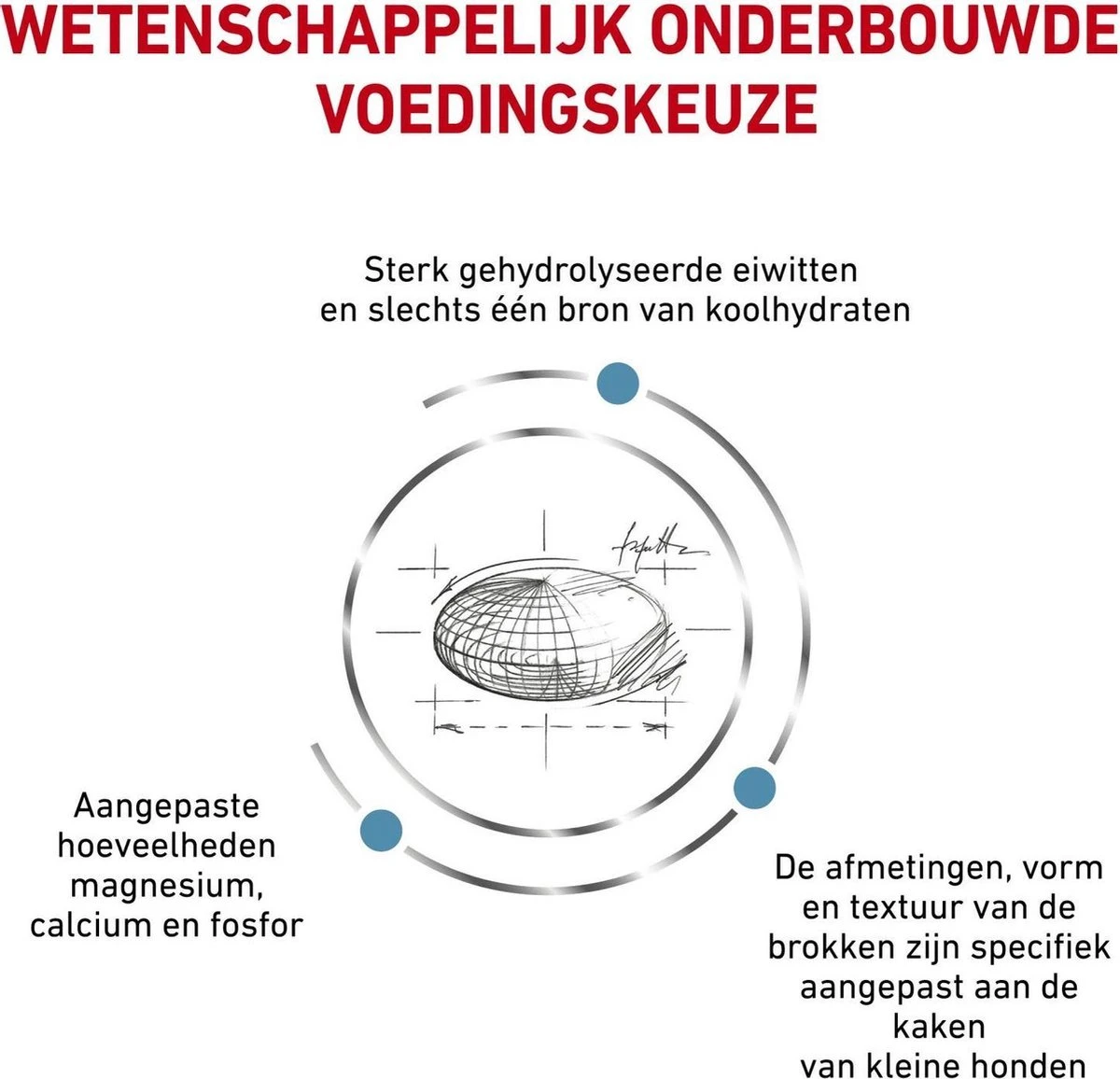 Royal Canin Hypoallergenic Small dog speciaal voor kleinere honden die last hebben van voedselovergevoeligheid.