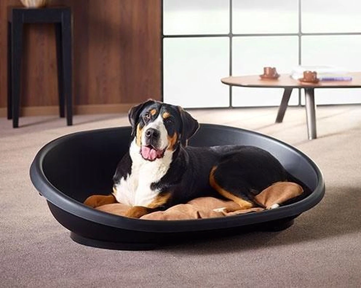 Snooze plastic mand zwart 117x80x34 cmDeze robuuste plastic mand is geschikt voor katten en honden. Door de lage instap kan jouw lieveling makkelijk zijn mand in- en uitstappen. Het is daardoor een zeer praktische mand voor jonge, oudere of zieke dieren.