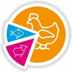 Kippenmeel (19%), mais, gerst, rijst, sorghum, kippenvet (gestabiliseerd met natuurlijke tocoferolen), lamsmeel (4%), bietenpulp, gehydroliseerd eiwit, MSC-gecertificeerde vismeel (2%)*, vitaminen en mineralen mix, gist, cellulose (1%), MSC visolie (0,8%)*, cichorei (0,7%), natriumhexametafosfaat (0,1%). *Uit een MSC gecertificeerde duurzame visserij.