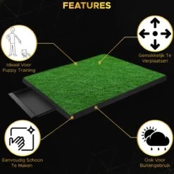 Het toilet is zeer gemakkelijk schoon te houden, dit doet u door de bak na gebruik te legen en indien nodig de mat een keer af te spoelen. Dit maakt het hondentoilet daarom ook een goede vervanger van papieren pads.