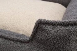 Deze mand is namelijk uitermate duurzaam omdat hij gemaakt is van minstens 88% gerecycled materiaal. De mand is comfortabel door de bekleding met krullend pluche en de vulling van schuimrubber vlokken. De rand is perfect om tegenaan te leunen voor meer steun en het kussen is geïntegreerd zodat het niet kan verschuiven. Bovendien heeft de mand een lage instap en een slipvaste onderkant, wat in- en uitstappen ook voor oudere of lichamelijk beperkte honden gemakkelijker maakt.