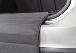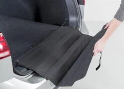 De Trixie Bumperbescherming Opvouwbaar Zwart 80 x 63 cm is een rubberen beschermingsmat met versterkingsinzetstukken ter bescherming van de autobumper. Het ideale middel om de hond in en uit de kofferbak te laten springen zonder dat de nagels schade aan de lak van de auto of de kunststof delen veroorzaken. Tevens zorgt deze bescherming voor meer grip, zodat de hond gemakkelijker in en uit de auto kan springen. De bescherming is gemaakt van rubber en voorzien van versterkte inzetstukken. Met elastieken banden en karabijnhaken kan de bumperbescherming eenvoudig aan de laadhaken in de kofferbak worden bevestigd. Wanneer deze niet gebruikt wordt, kan deze mat eenvoudig ruimtebesparend op te bergen en met klittenband vastgemaakt worden.