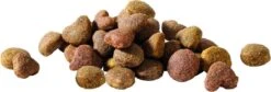 | Voedingswaarde | Samenstelling: Vlees en dierlijke bijproducten (12% kip in de bruine en gele brokjes) / Granen (4% maïs, 4% Rijst) / Plantaardige bijproducten / Groenten (4% erwten, 0,5% wortel en 0,5% tomaat in de bruine brokjes) / Oliën en vetten (0,5% zalmolie in de bruine brokjes) / Zaden / Mineralen / Gist / Vruchten (0,5% appel in de bruine brokjes) |