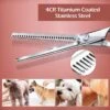 De kromme schaar kan gemakkelijk uitstekende haren knippen zonder dat u onevenheden maakt in de vacht van uw harige vriend/vriendin.